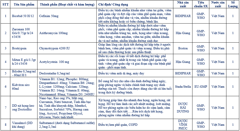 Khuyến mãi áp dụng đối với Khách hàng khi mua Bộ sản phẩm Combo “Kháng sinh điều trị trong nhiễm khuẩn Viêm phế quản/Viêm phổi cho các bệnh nhi dưới 2 tuổi”, sử dụng kết hợp các sản phẩm: