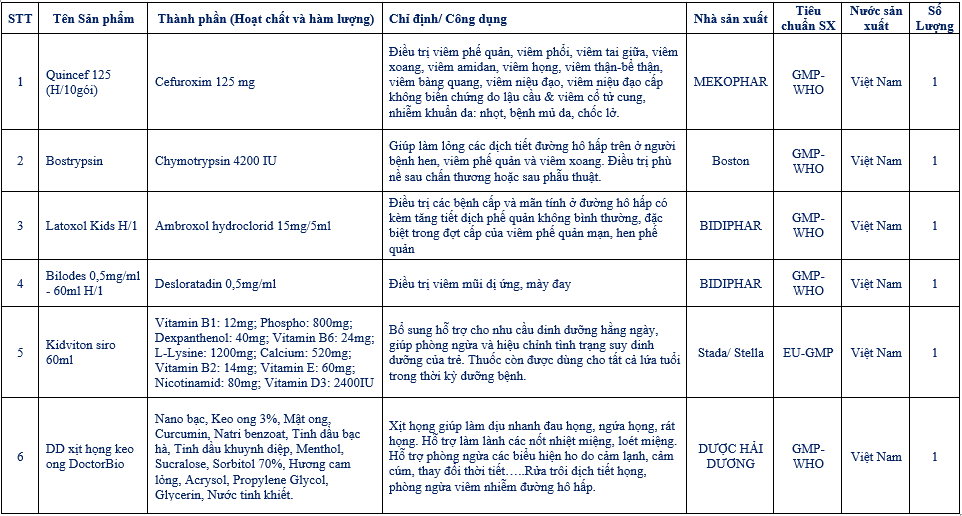 Combo Kháng sinh điều trị trong nhiễm khuẩn hô hấp CẤP cho các bệnh nhi từ 2 đến 6 tuổi