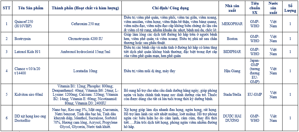 Áp dụng đối với các khách hàng khi mua đủ bộ sản phẩm Combo “Kháng sinh điều trị trong nhiễm khuẩn hô hấp CẤP cho các bệnh nhi từ 6 đến 12 tuổi”, sử dụng kết hợp các sản phẩm: